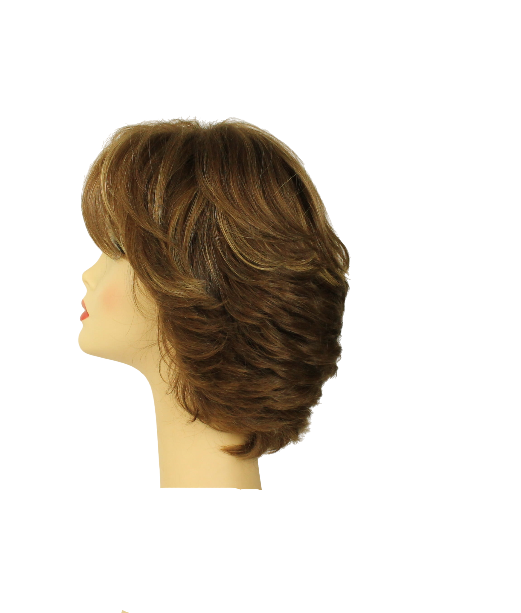 Linda is a "pixie" style, with short layers at the back and sides, and a straight texture. The nape area hugs the neck gently for a natural look.
