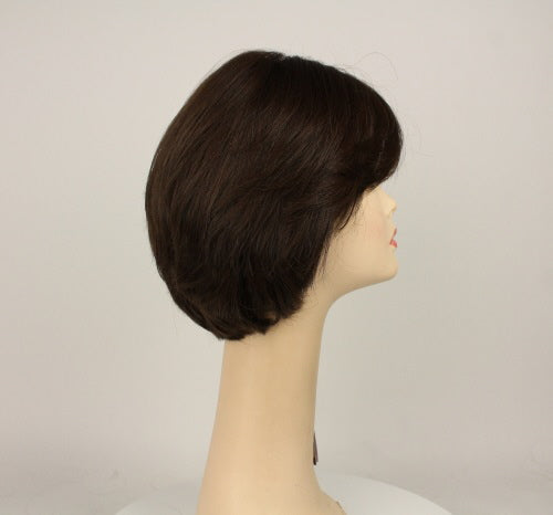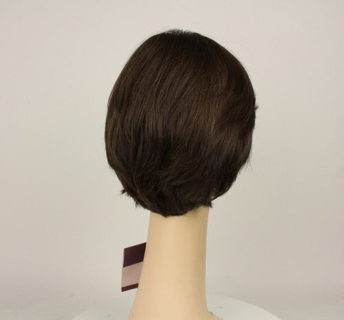 Linda is a "pixie" style, with short layers at the back and sides, and a straight texture. The nape area hugs the neck gently for a natural look.