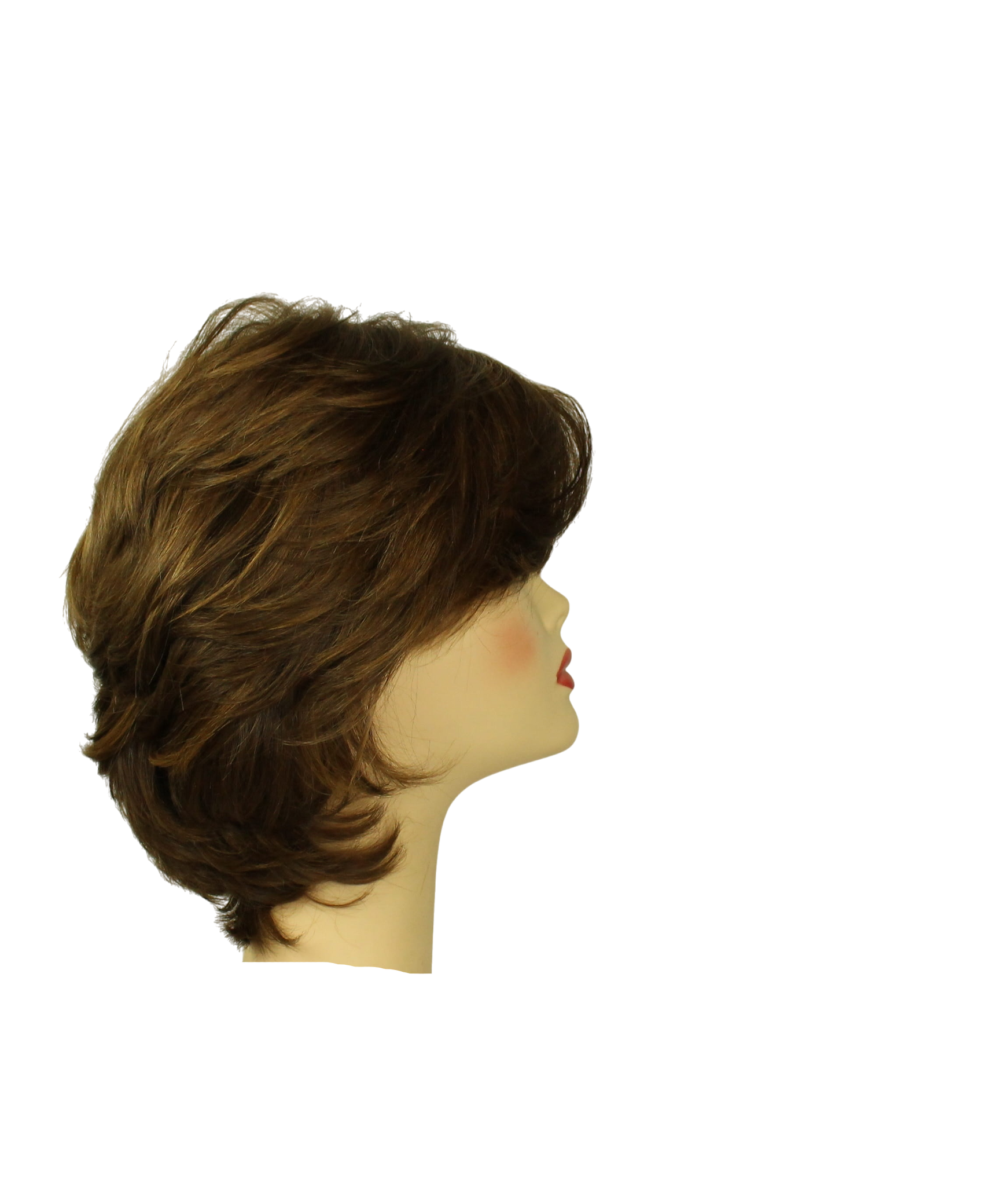Linda is a "pixie" style, with short layers at the back and sides, and a straight texture. The nape area hugs the neck gently for a natural look.