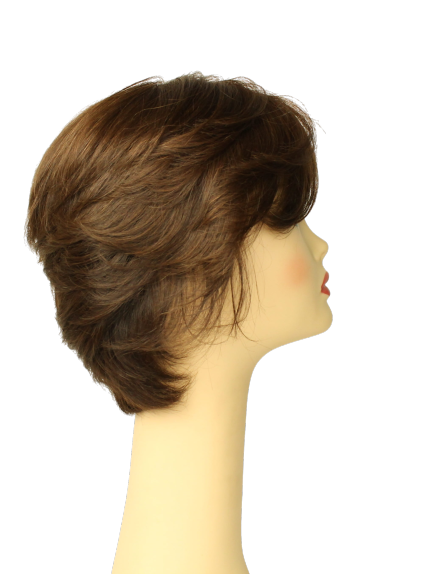 Linda is a "pixie" style, with short layers at the back and sides, and a straight texture. The nape area hugs the neck gently for a natural look.