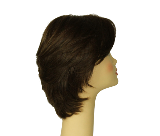 Linda is a "pixie" style, with short layers at the back and sides, and a straight texture. The nape area hugs the neck gently for a natural look.