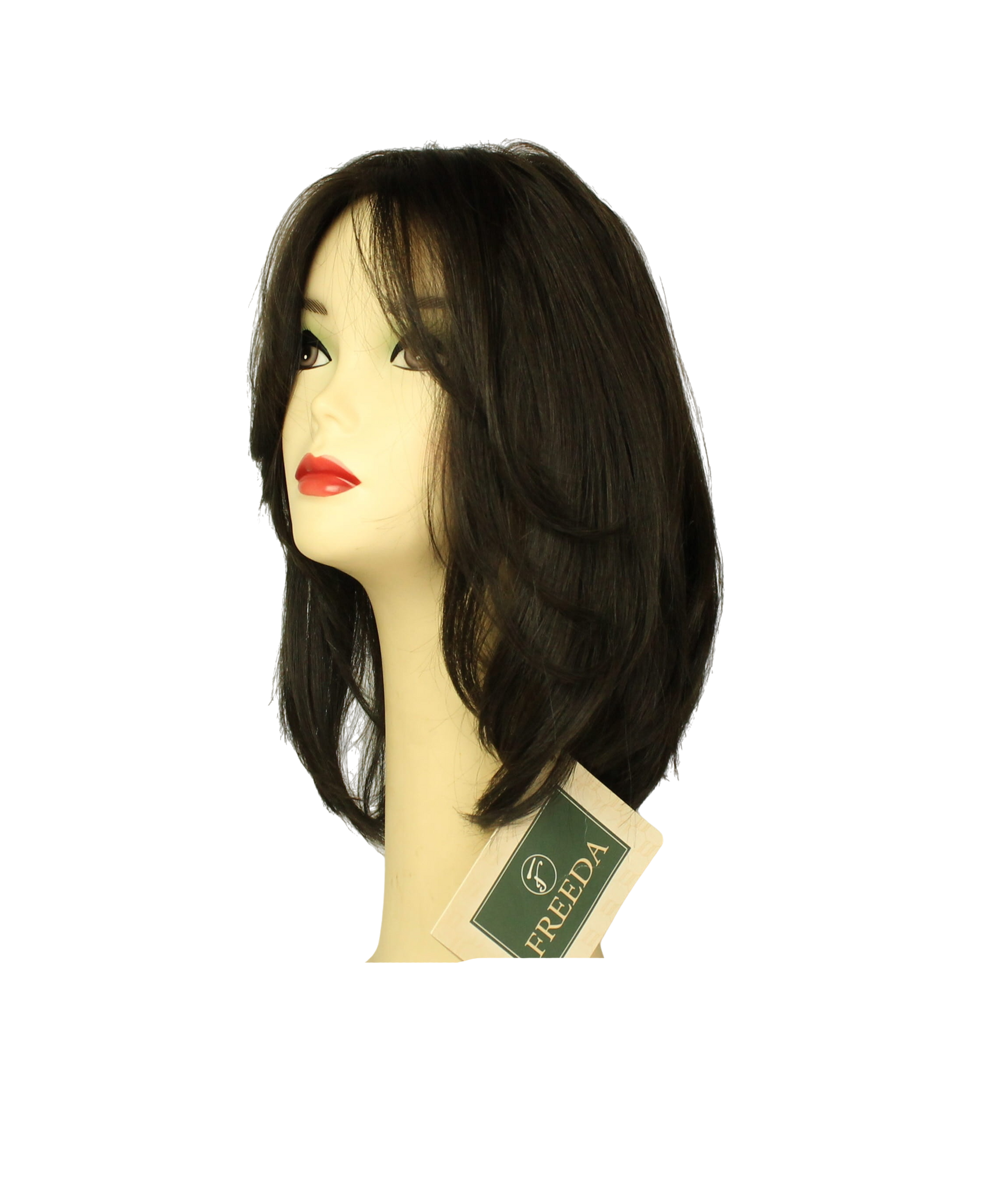 Riva has hair between 14-16" long. Riva comes in a straight texture with some long layers. Riva's hair is very versatile and can be styled to have texture or be worn straight. Riva is a great style for all types of occasions.